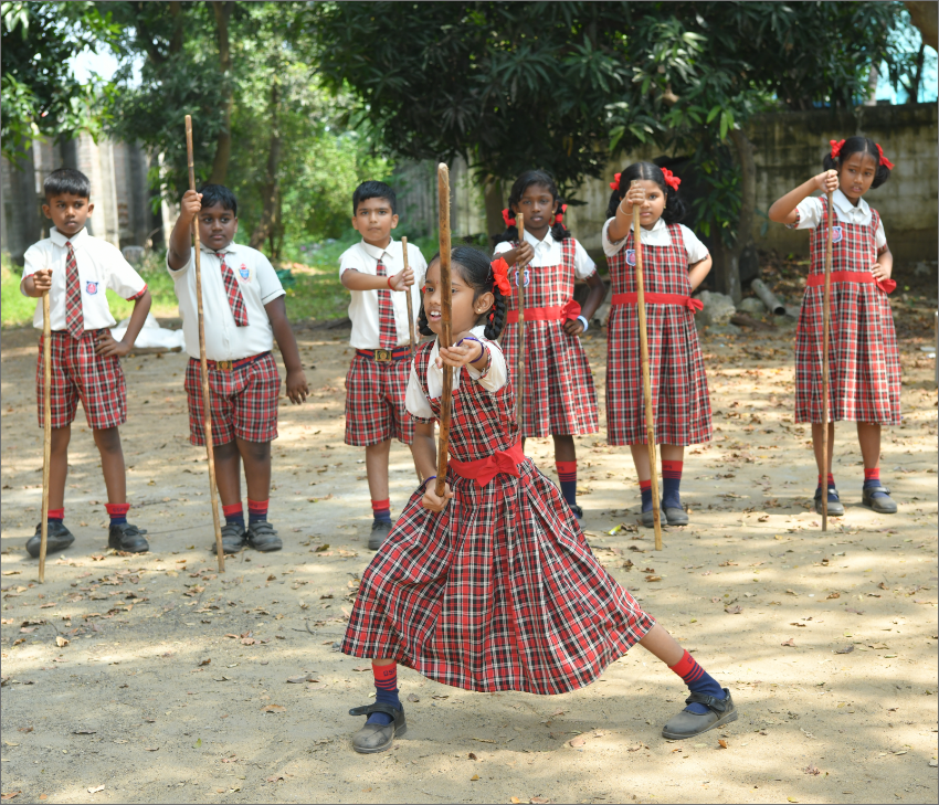 The classical Tamil martial art—footwork, rhythm, timing, and coordinated weapon handling under strict safety supervision. Builds cultural pride with precision and discipline.